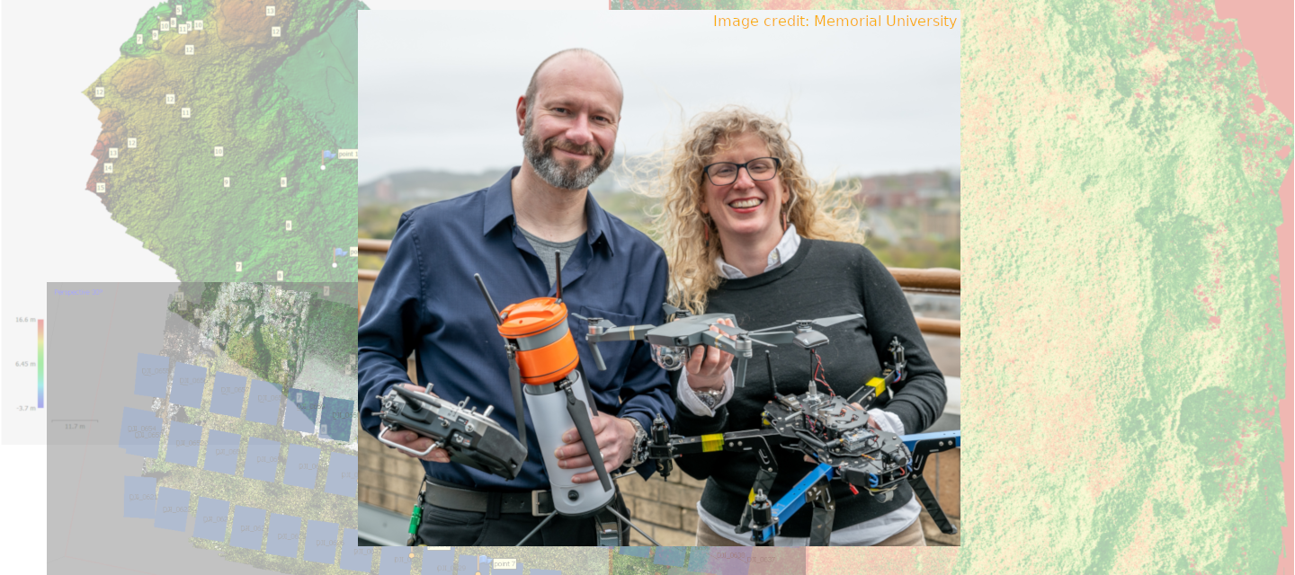 To achieve centimetre grade accuracy in survey models, conventional GPS is insufficient. We use survey grade GNSS equipment, often referred to as RTK (real time kinematic) to mark ground control points (GCPs). This is done using a base station and a roaming Global Navigation Satellite System (GNSS) unit. These extremely precise location measurements can be incorporated into the model mapping process. Because we add the points after the survey flight, this approach is technically called Post Processed Kinematic (PPK). Image Copyright: A. Crompton & M. Bolli, 2018.